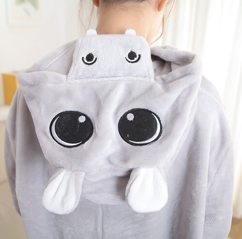 З цією піжамою ви одразу ж перетворитеся на Бегемотика з великими очима, маленькими вушками і довгим хвостиком, завдяки чому вона є дуже популярною. Застебніть ґудзики спереду, блискавку для туалету ззаду, і відчуйте все тепло яке дарує піжама.
