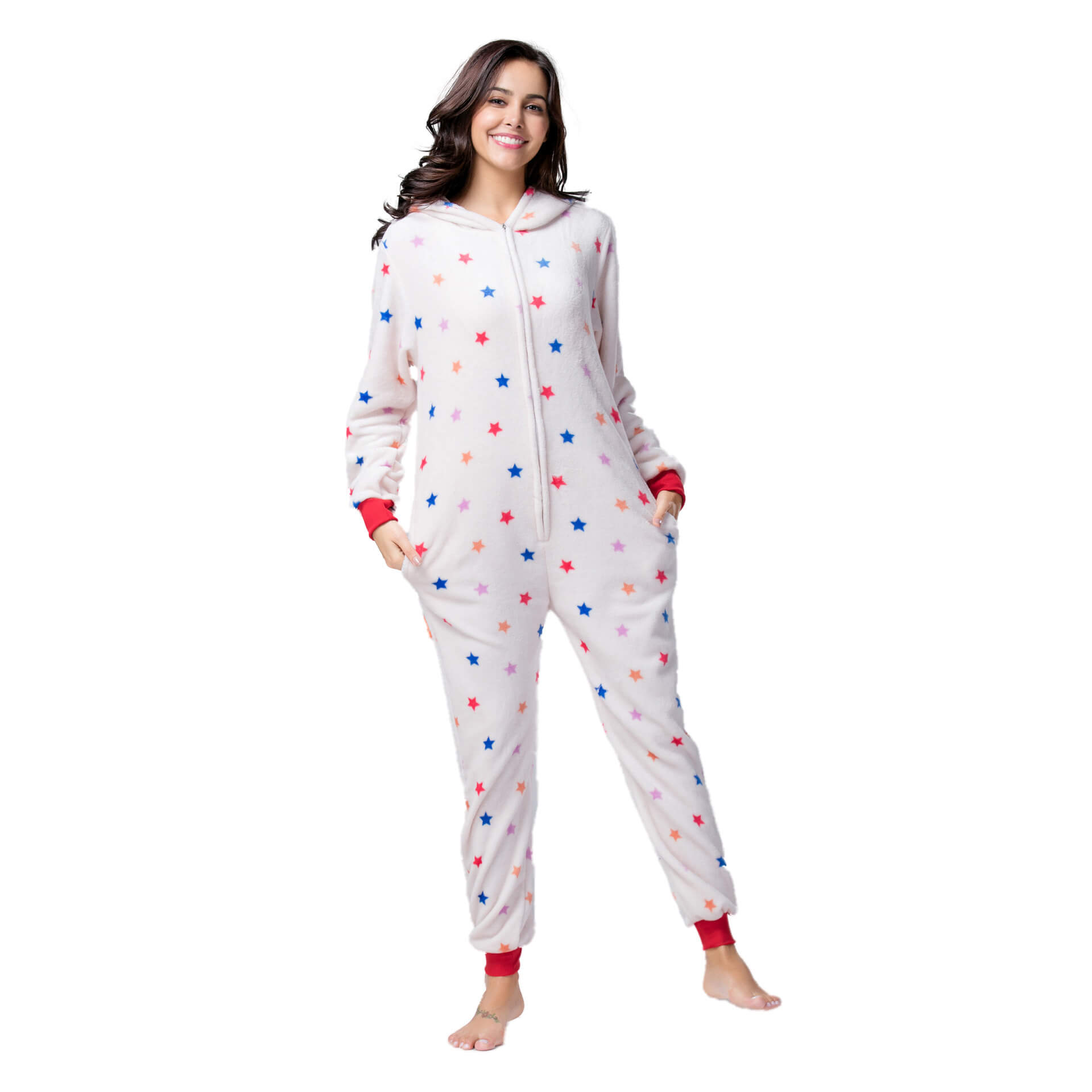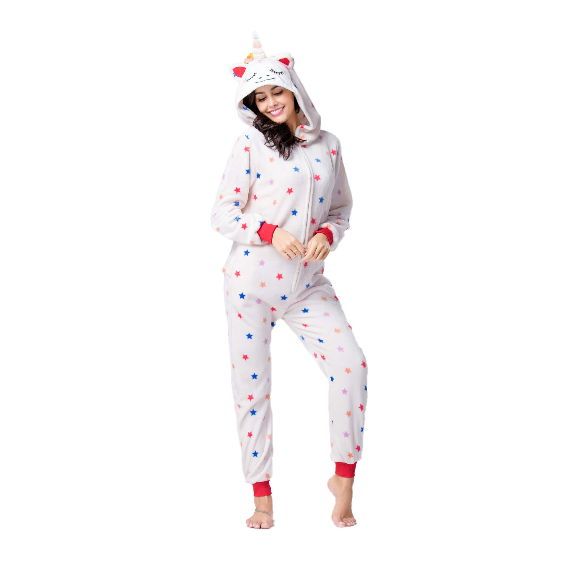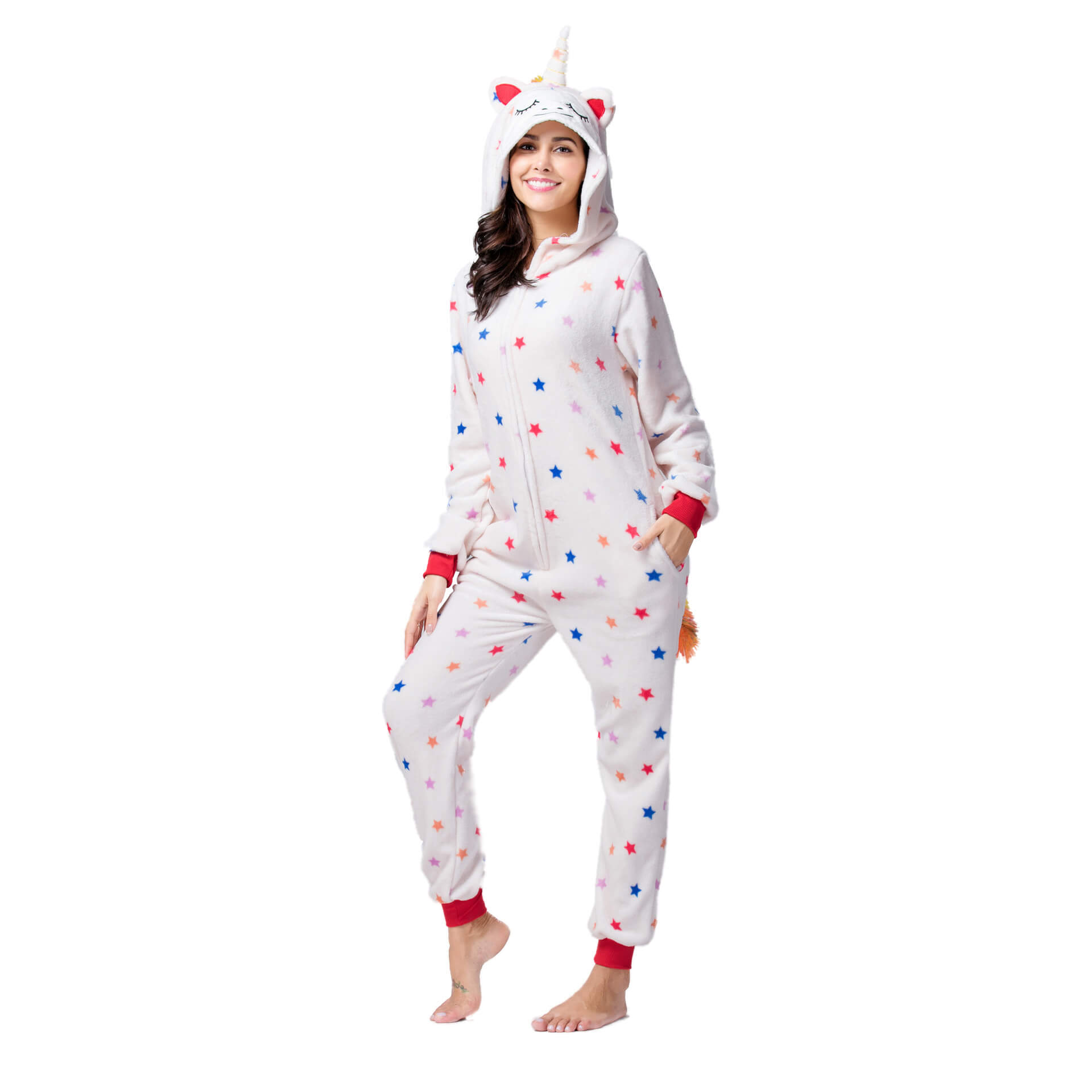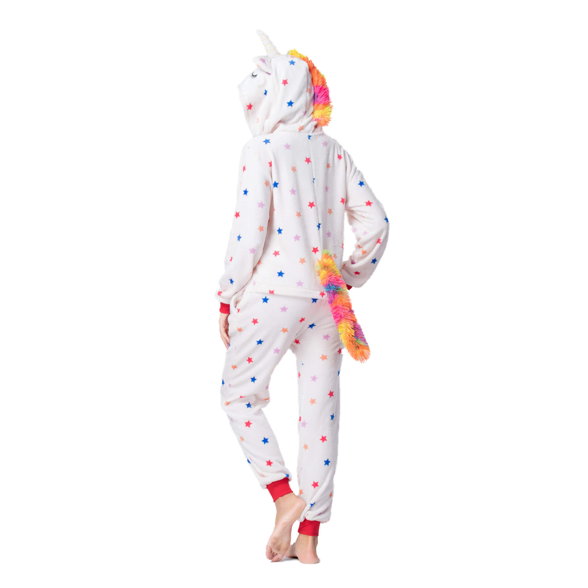 З цією піжамою ви відразу перетворитесь на Єдинорога з сонними оченятами, кольоровим хвостиком, рогом на голові, завдяки чому вона є дуже популярною. Застебніть блискавку спереду, блискавку для туалету ззаду, і відчуйте все тепло, яке дарує піжама.