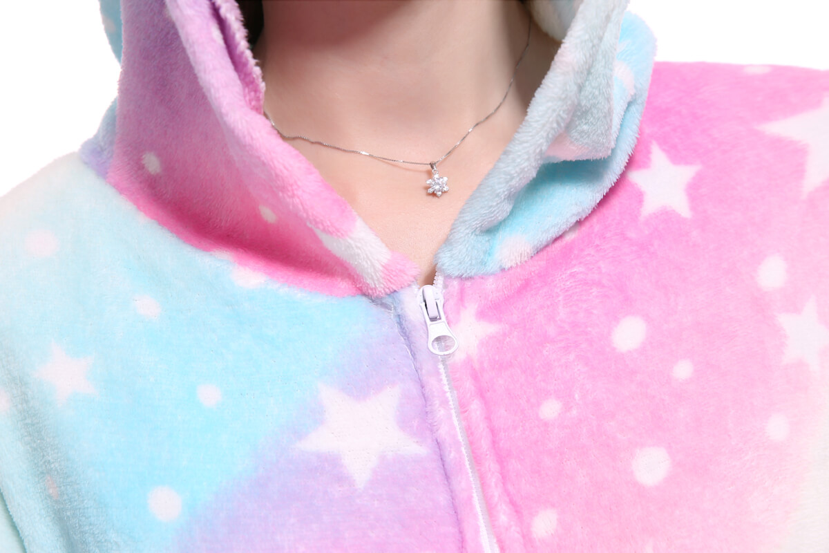 З цією піжамою ви відразу ж перетворитеся на Єдинорога з малиновими вушками, кольоровим рогом, завдяки чому вона є дуже популярною. Застебніть блискавку спереду, блискавку для туалету ззаду, і відчуйте все тепло, яке дарує піжама.