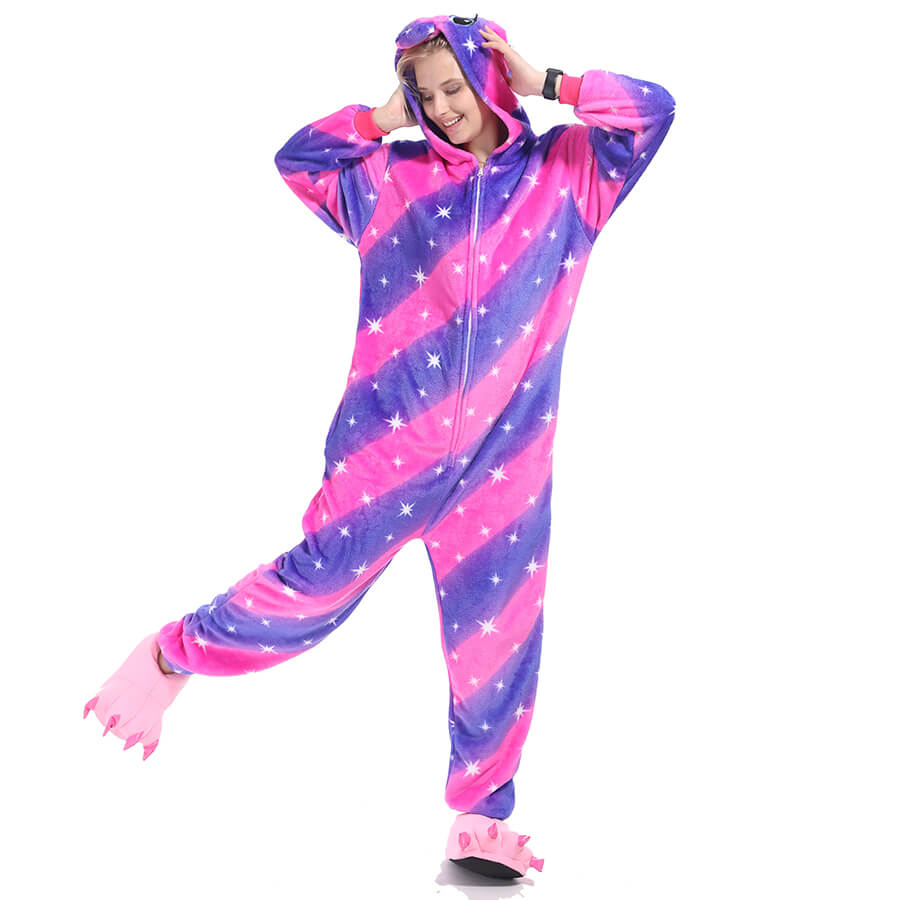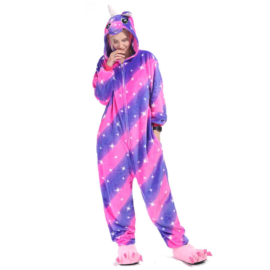 З цією піжамою ви відразу перетворитесь на Єдинорога з білими зірочками і рожево-фіолетове забарвлення, маленькими вушками, хвостиком, завдяки чому вона є дуже популярною. Застебніть блискавку спереду, блискавку для туалету ззаду, і відчуйте все тепло, яке дарує піжама.