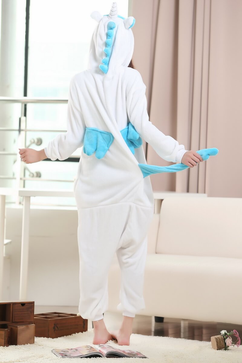 З цією піжамою ви відразу перетворитесь на Єдинорога з крилами, маленькими вушками, глазками і рогом, завдяки чому вона є дуже популярною. Застебніть гудзики спереду, блискавку для туалету ззаду, і відчуйте все тепло, яке дарує піжама.