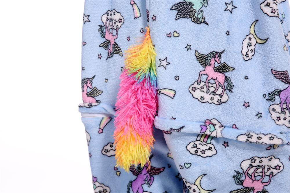 З цією піжамою ви відразу перетворитесь на Єдинорога з сонними одноріжками по всьому тілу, милими малиновими вушками і хвостиком, завдяки чому вона є дуже популярною. Застебніть блискавку спереду, блискавку для туалету ззаду, і відчуйте все тепло, яке дарує піжама.