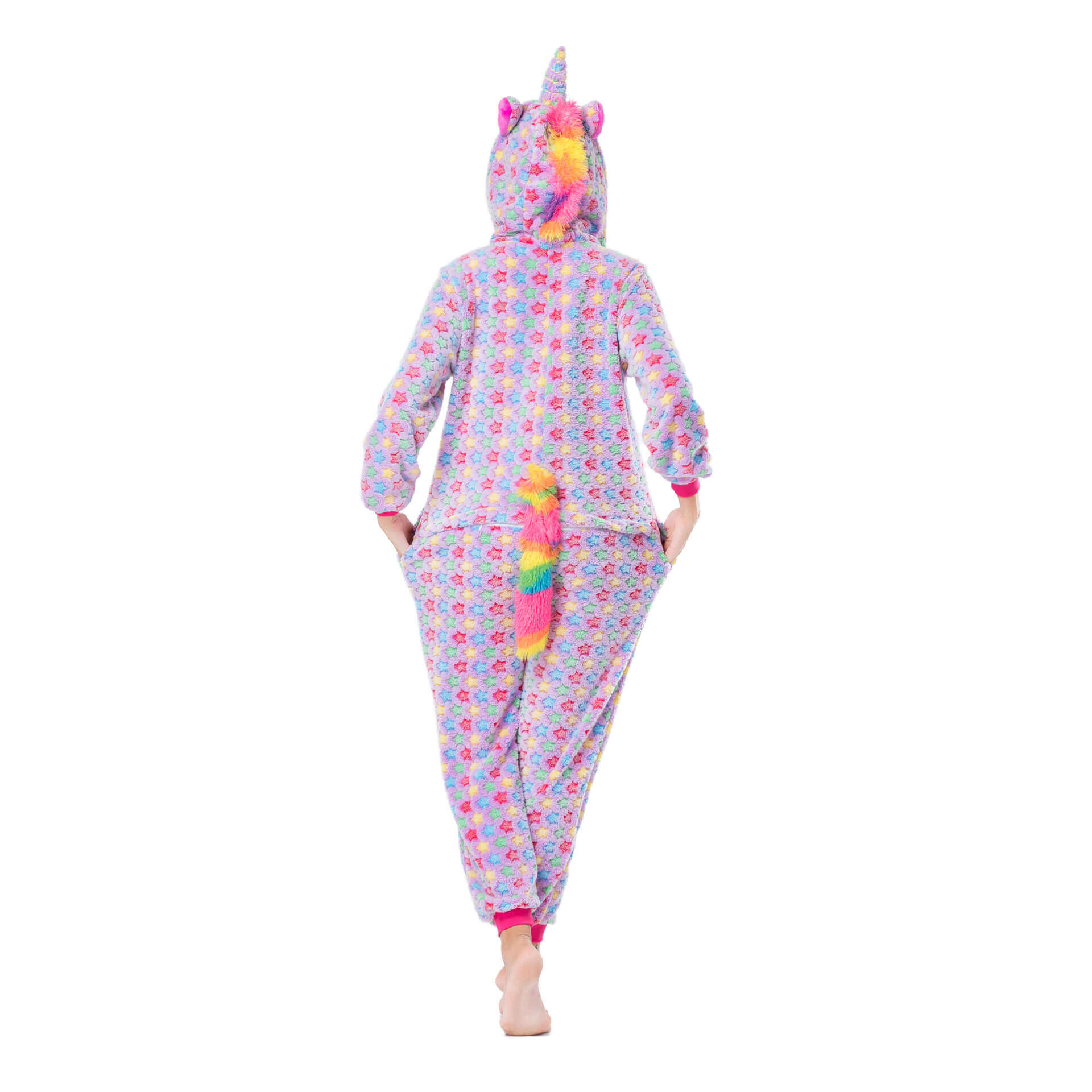 З цією піжамою ви відразу перетворитесь на Єдинорога з різнокольоровими зірочками по всьому тілу, завдяки чому вона є дуже популярною. Застебніть блискавку спереду, блискавку для туалету ззаду, і відчуйте все тепло, яке дарує піжама.