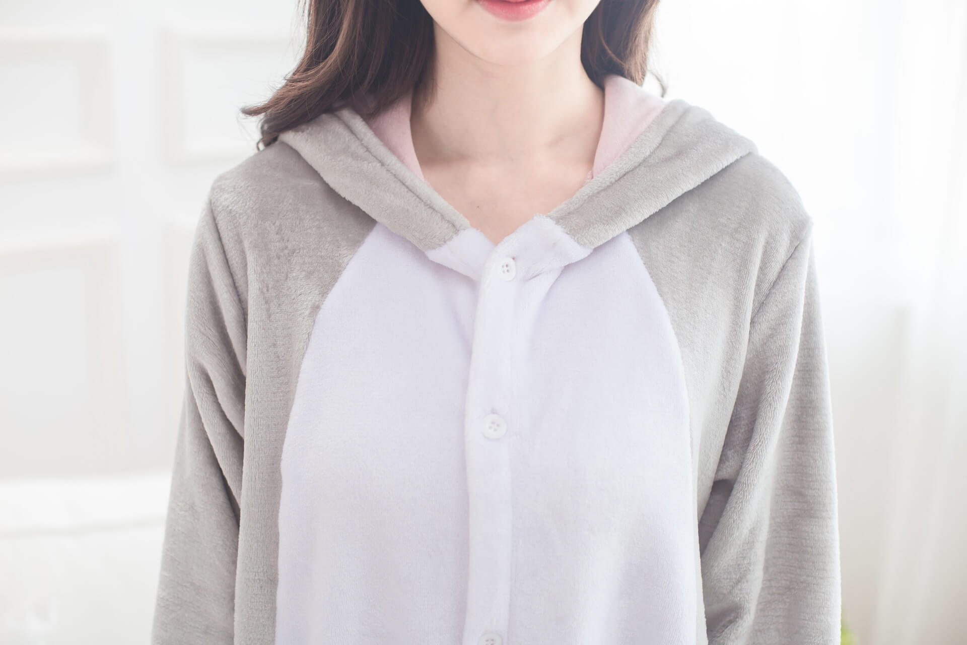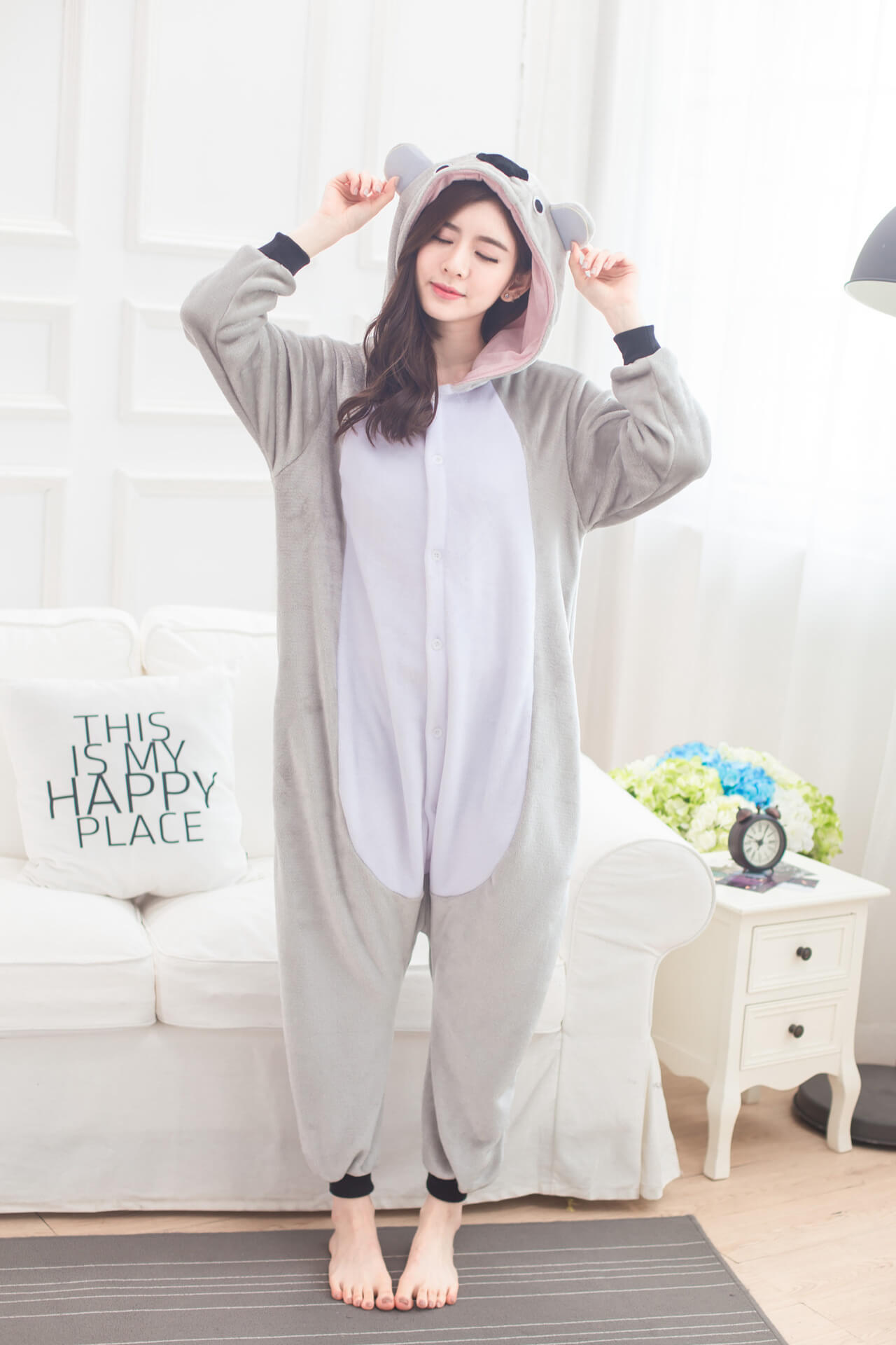 З цією піжамою ви відразу перетворитесь на Коалу з великим носиком, маленькими вушками і хвостиком, завдяки чому вона є дуже популярною. Застебніть гудзики спереду, блискавку для туалету ззаду, і відчуйте все тепло, яке дарує піжама.