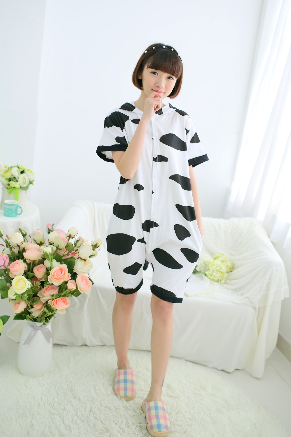 Затишна і яскрава літня кігурумі Корівка Мілка - ідеальне рішення для тих, хто цінує комфорт і стиль навіть коли на вулиці спека, літня кігурумі у формі Корівки виготовлена з бавовни, завдяки чому тканина дихає і добре продувається. З цією піжамою ви відразу перетворитесь на Корівку з ріжками, хвостиком і милою мордочкою, завдяки чому вона є дуже популярною. Застебніть гудзики спереду, блискавку для туалету ззаду, і відчуйте наскільки зручно перебувати в піжамі.