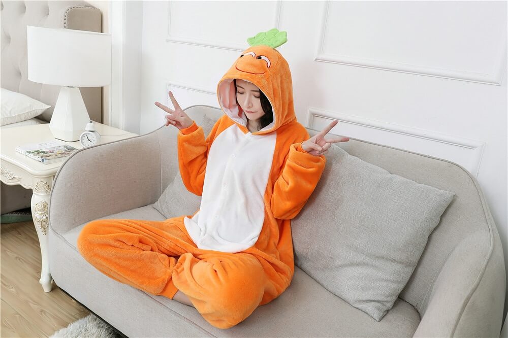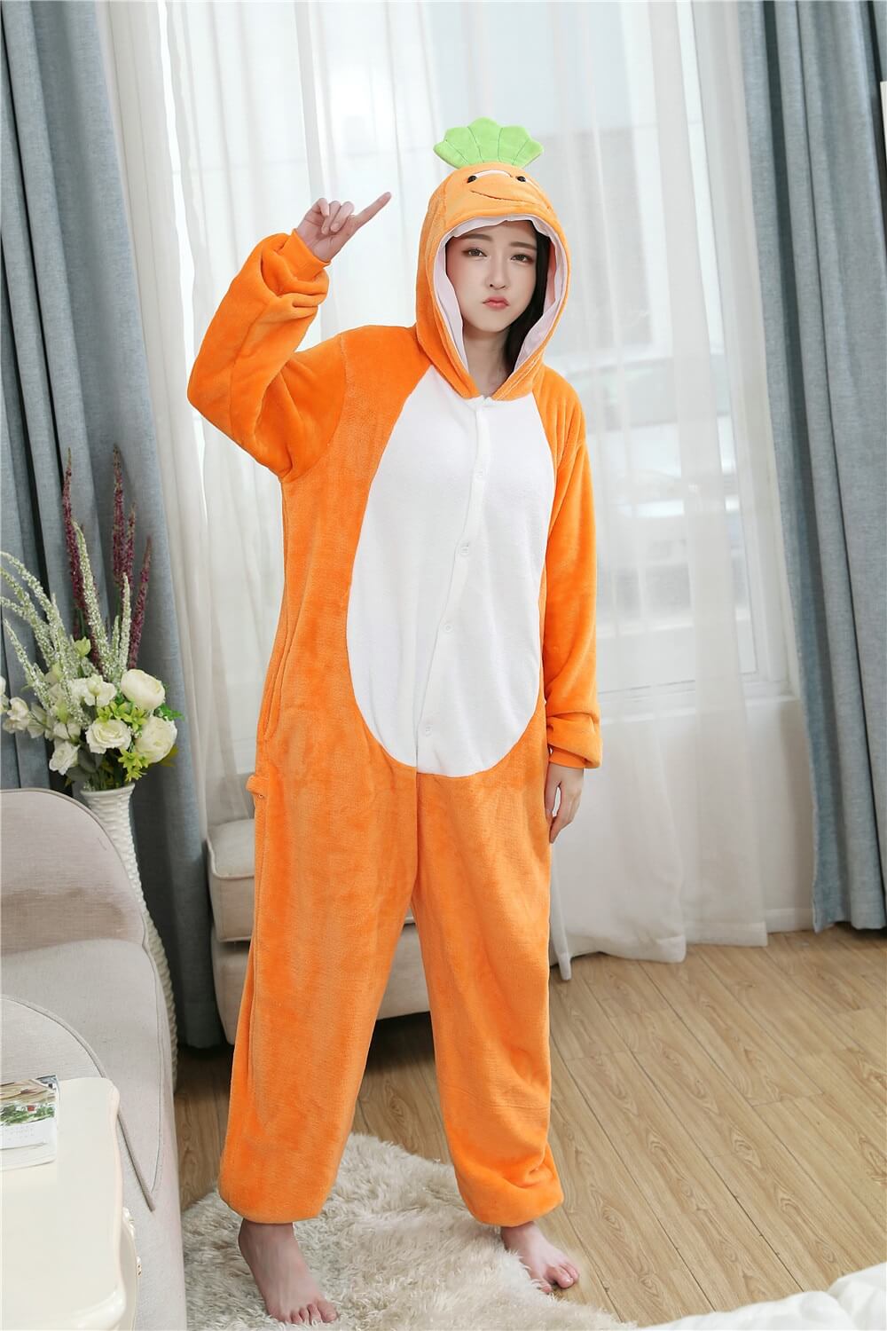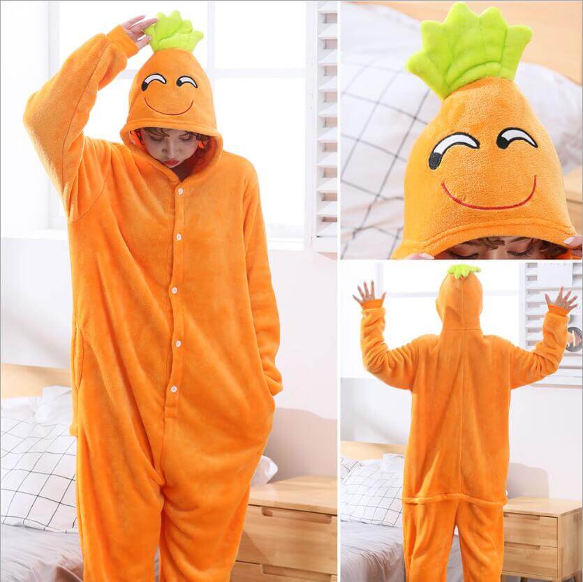 З цією піжамою ви відразу ж перетворитеся на Моркву з бадиллям на голові, і хитрою посмішкою, завдяки чому вона є дуже популярною. Застебніть гудзики спереду, блискавку для туалету ззаду, і відчуйте все тепло, яке дарує піжама.