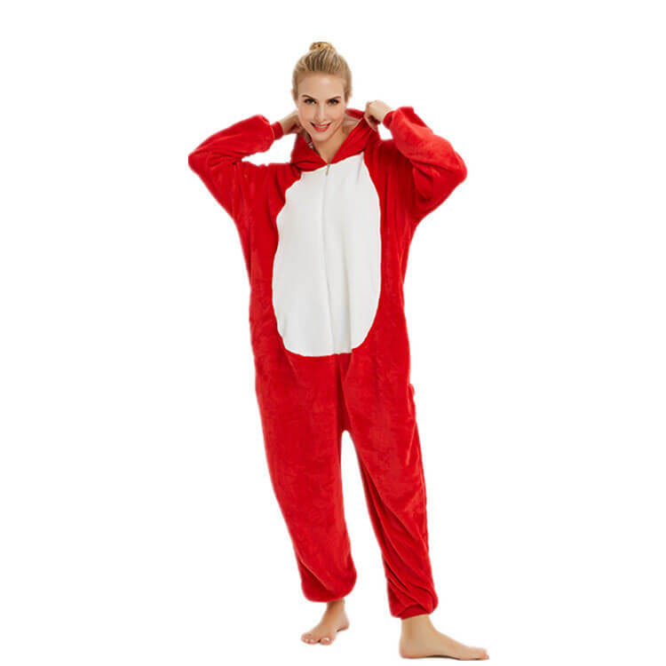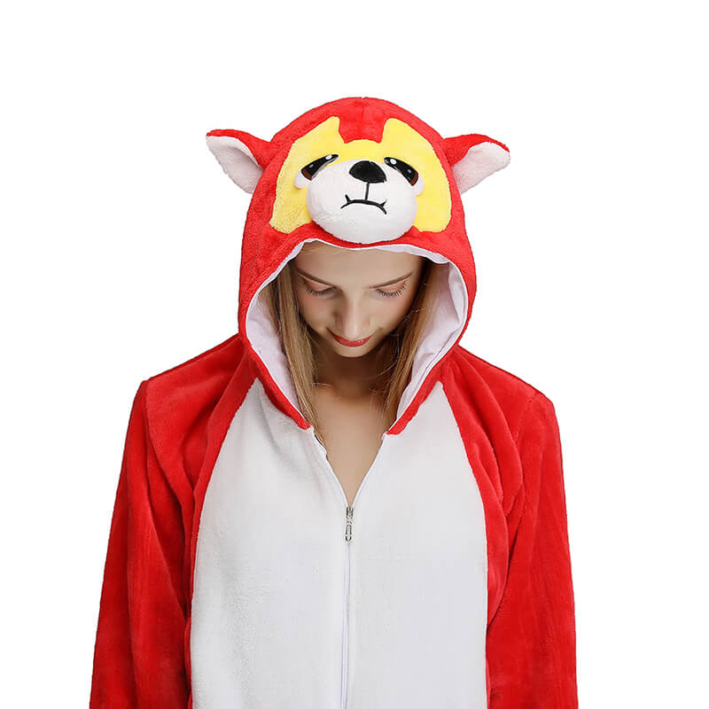 З цією піжамою ви відразу перетворитесь на Пса з красивим червоним кольором, маленьким хвостиком, вушками і носиком, завдяки чому вона є дуже популярною. Застебніть блискавку спереду, блискавку для туалету ззаду, і відчуйте все тепло, яке дарує піжама.