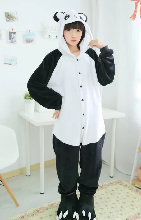 З цією піжамою ви відразу перетворитесь на Панду з доброю усмішкою, милими очима і хвостиком, завдяки чому вона є дуже популярною. Застебніть гудзики спереду, блискавку для туалету ззаду, і відчуйте все тепло, яке дарує піжама.