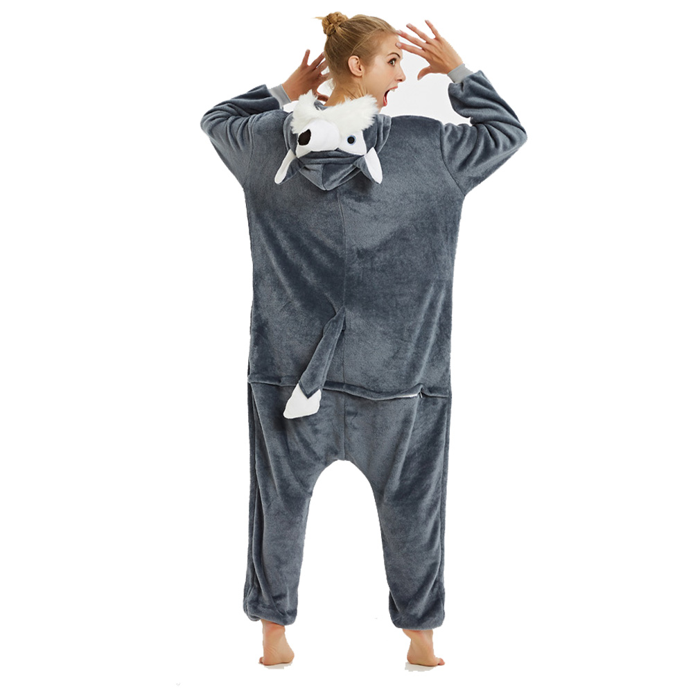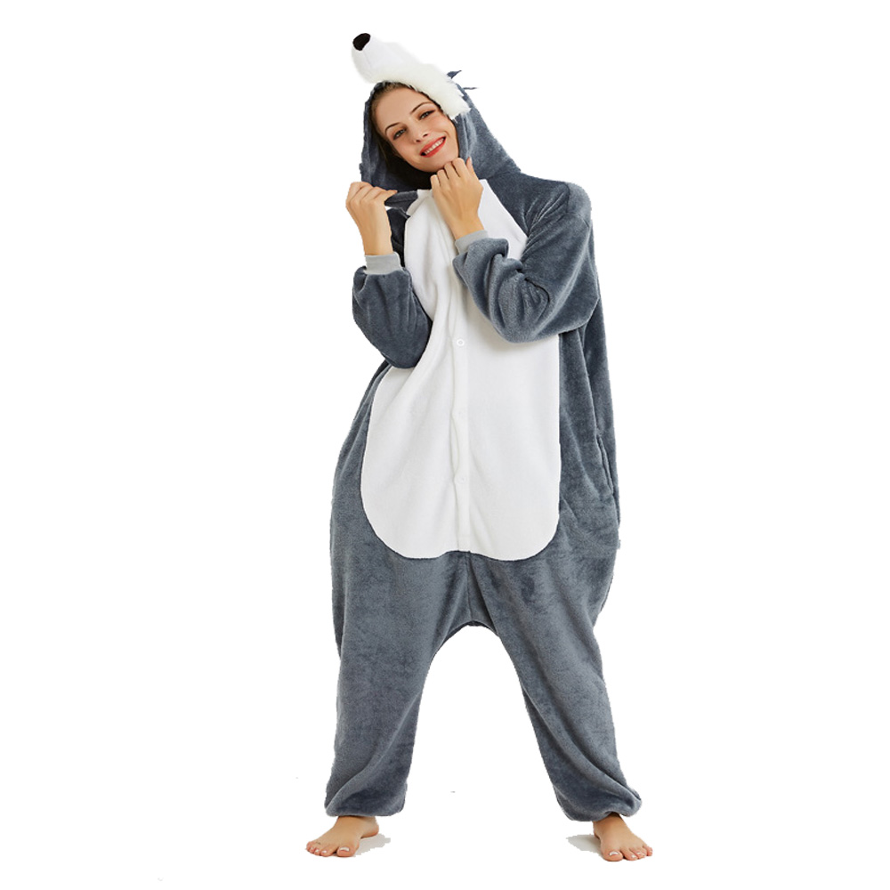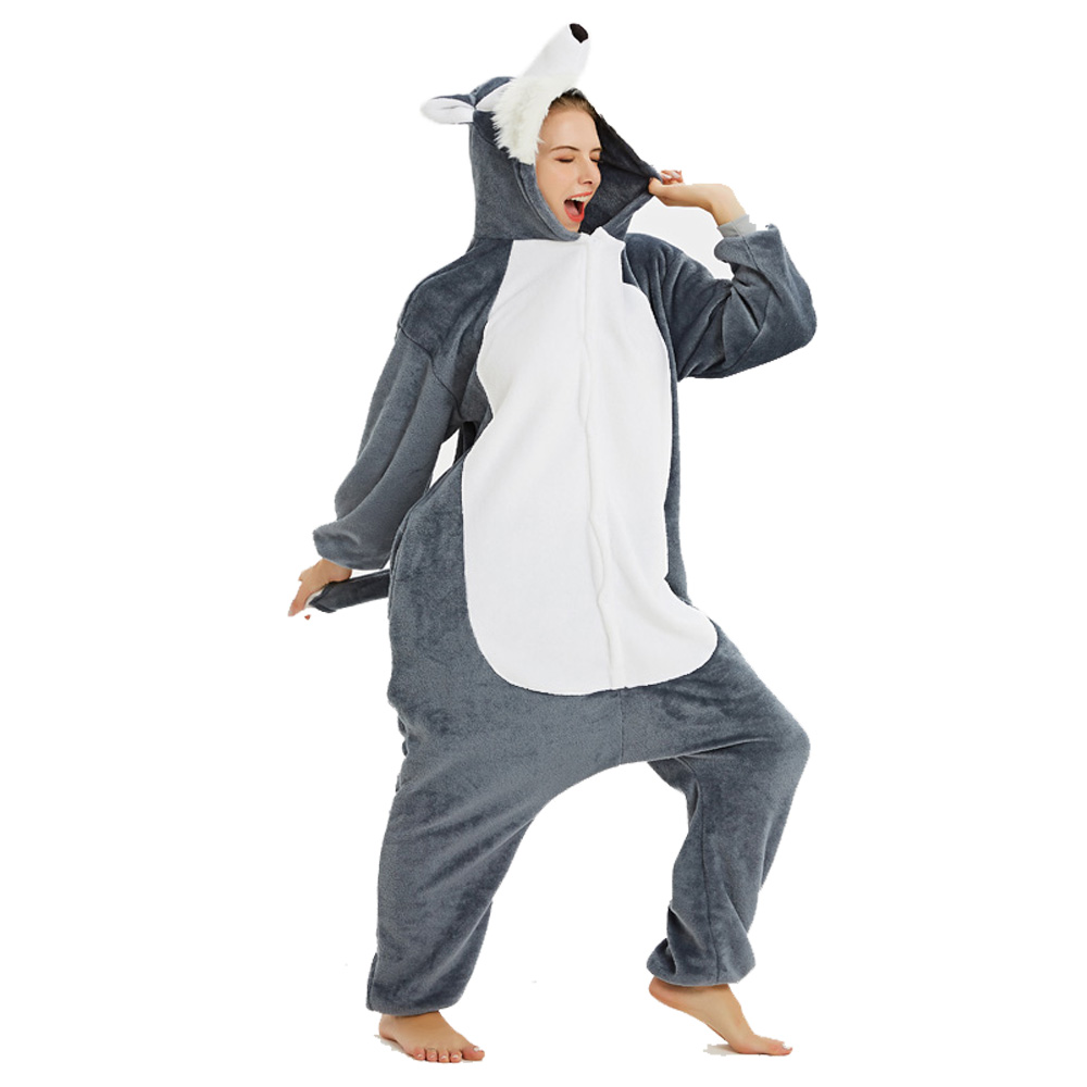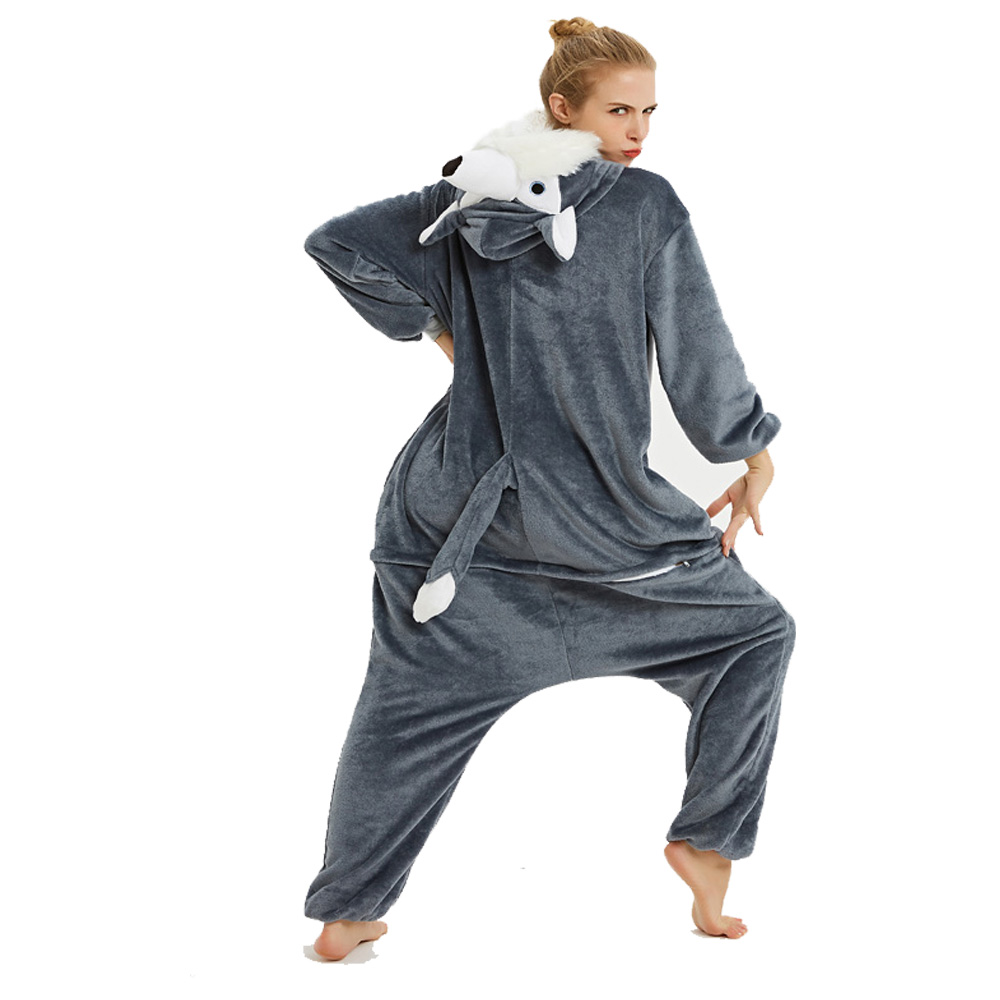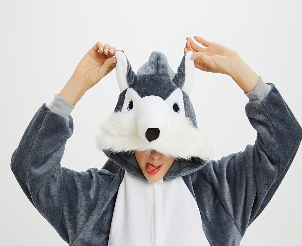 З цією піжамою ви відразу перетворитесь на Вовка з довгим носом, маленькими очима, довгим хвостом, завдяки чому вона є дуже популярною. Застебніть гудзики спереду, блискавку для туалету ззаду, і відчуйте все тепло, яке дарує піжама.
