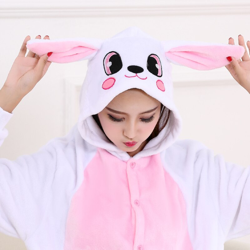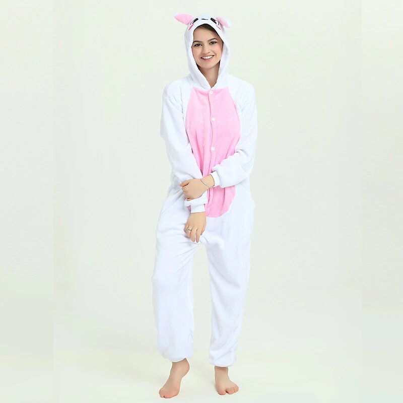 Затишна і яскрава кігурумі Кролик Біло-рожевий - ідеальне рішення для тих, хто цінує комфорт і стиль, піжама-комбінезон у формі Кролика не тільки забезпечить вас теплом в холодні ночі, але і додасть трохи веселощів у ваше життя.
