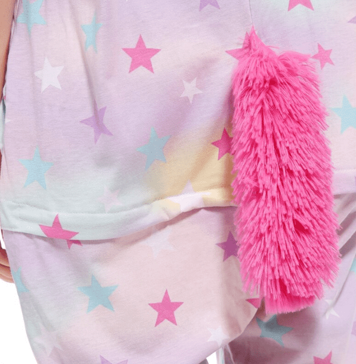 Затишна і яскрава літня кігурумі Єдиноріг Зірочка - ідеальне рішення для тих, хто цінує комфорт і стиль навіть коли на вулиці спека, літня кігурумі у формі Єдинорога виготовлена з бавовни, завдяки чому тканина дихає і добре продувається. З цією піжамою ви відразу перетворитесь на Єдинорога з рогом, гривою і хвостом, завдяки чому вона є дуже популярною. Застебніть гудзики спереду, блискавку для туалету ззаду, і відчуйте наскільки зручно перебувати в піжамі.