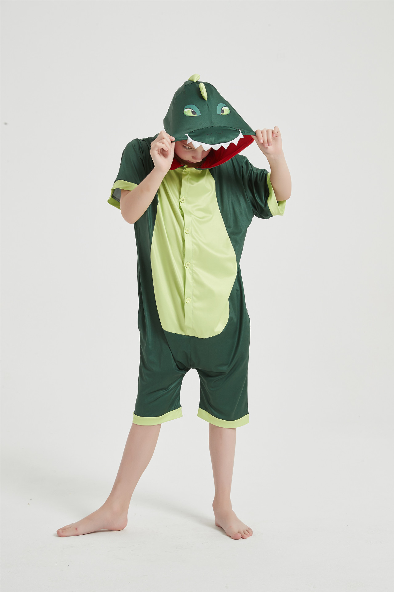 Кигуруми детская Дракон зеленый летняя (ледяной шелк)