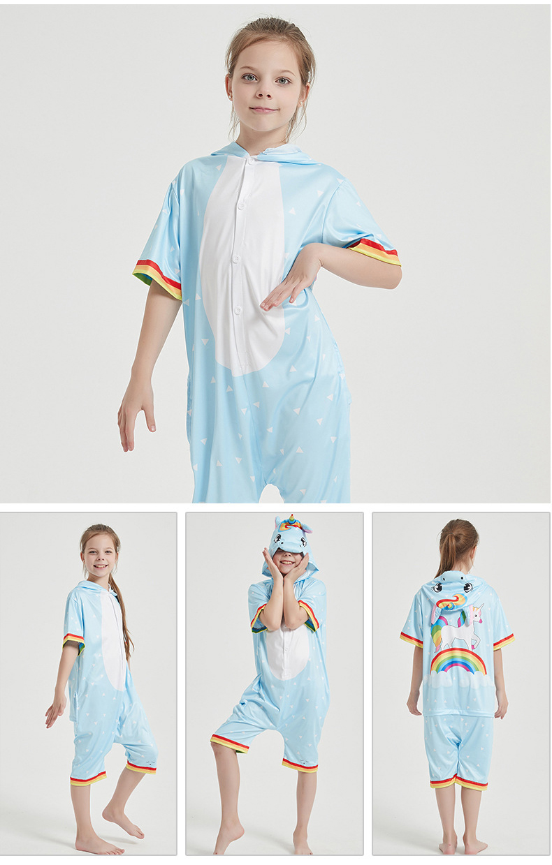 З цією піжамою ви відразу перетворитесь на Єдинорога з рогом на голові, вушками і веселкою на піжамі, завдяки чому вона є дуже популярною. Застебніть гудзики спереду, блискавку для туалету ззаду, і відчуйте прохолоду, яку дарує піжамка.