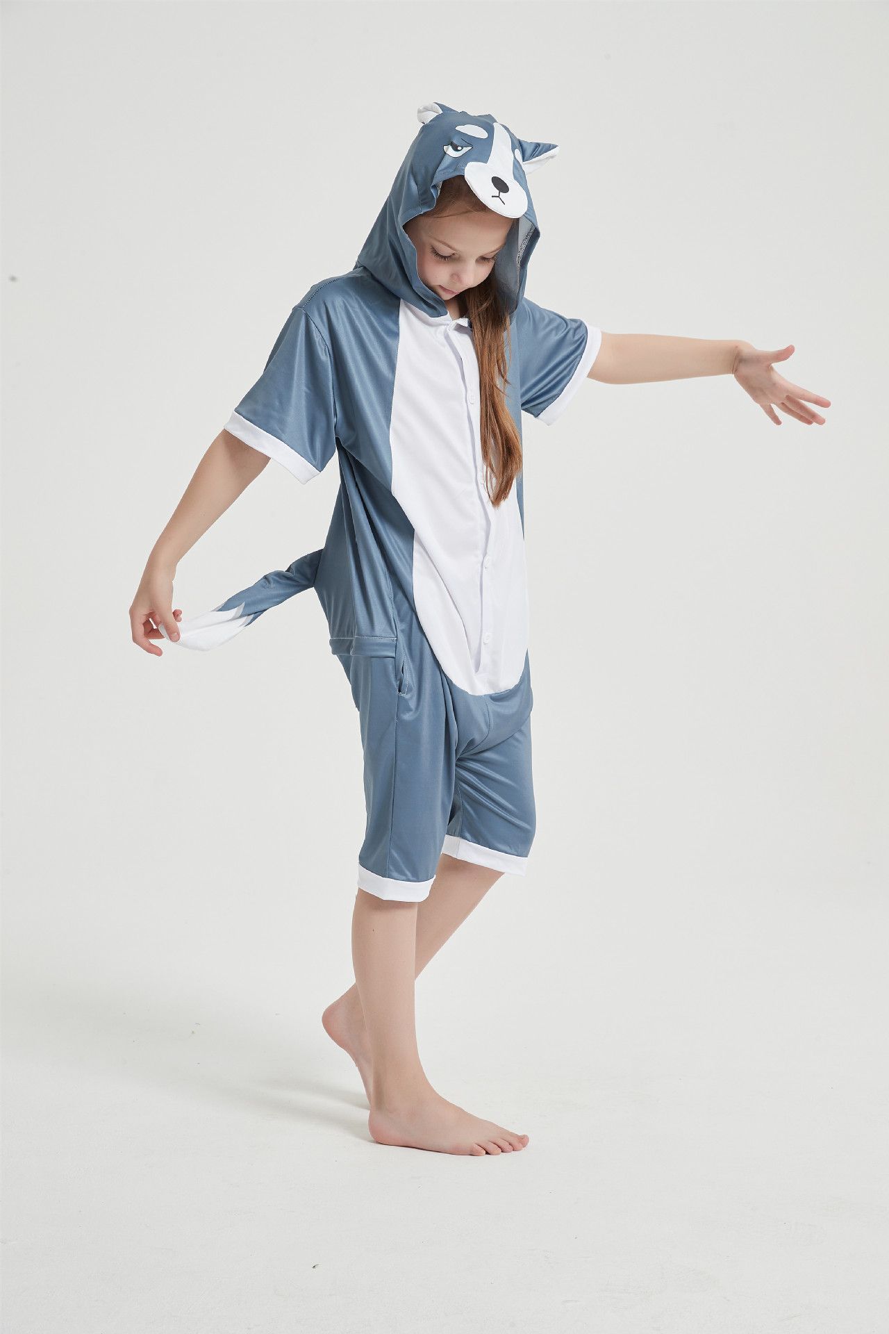 З цією піжамою ви відразу ж перетворитеся на Вовка з вушками, милою мордочкою і хвостом завдяки чому вона є дуже популярною. Застебніть гудзики спереду, блискавку для туалету ззаду, і відчуйте прохолоду, яку дарує піжамка.