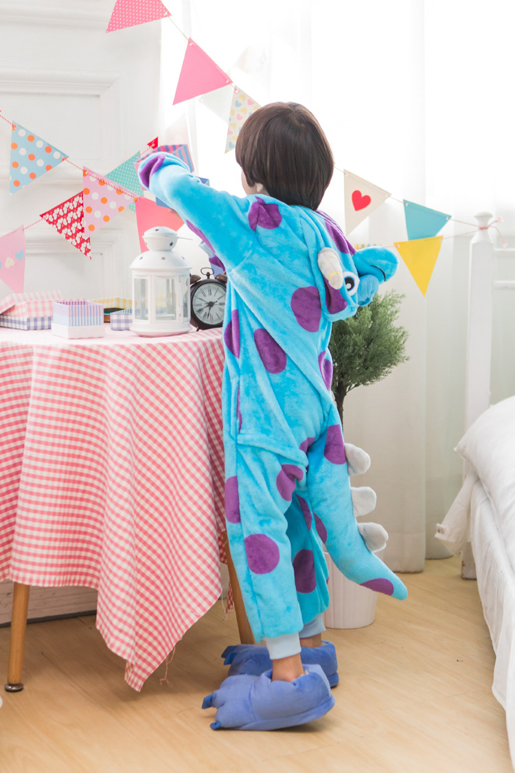 З цією піжамою ви відразу перетворитесь на Саллі з великим носом, рогами на голові, великими очима, завдяки чому вона є дуже популярною. Застебніть гудзики спереду, блискавку для туалету ззаду, і відчуйте все тепло, яке дарує піжама.