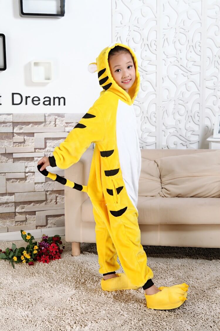 З цією піжамою ви відразу перетворитесь на Тигра з жовтим розфарбуванням, довгим хвостиком, маленькими вушками, завдяки чому вона є дуже популярною. Застебніть гудзики спереду, блискавку для туалету ззаду, і відчуйте все тепло, яке дарує піжама.