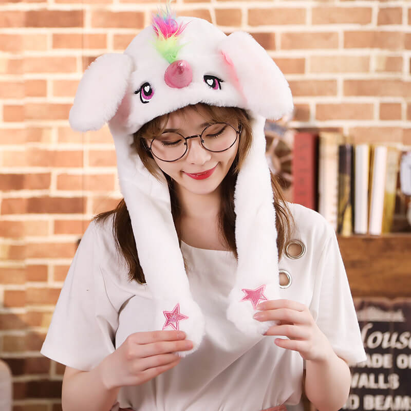 Шапка Єдиноріг Білий є унікальним головним убором з чарівним обличчям Єдинорога, добрим поглядом, великим рогом, вушками і довгими лапками. Особливістю цієї шапки є те, що при натисканні на лапки Єдинорога його вушка починають ворушитися! І це не жарт: ліва лапка керує лівим вушком, а права – правим. Цю шапку можна носити як узимку, щоб зберегти тепло, так і влітку на різних вечірках, фестивалях або просто підняти собі настрій. У такій шапці ви обов'язково привернете увагу всіх довкола!