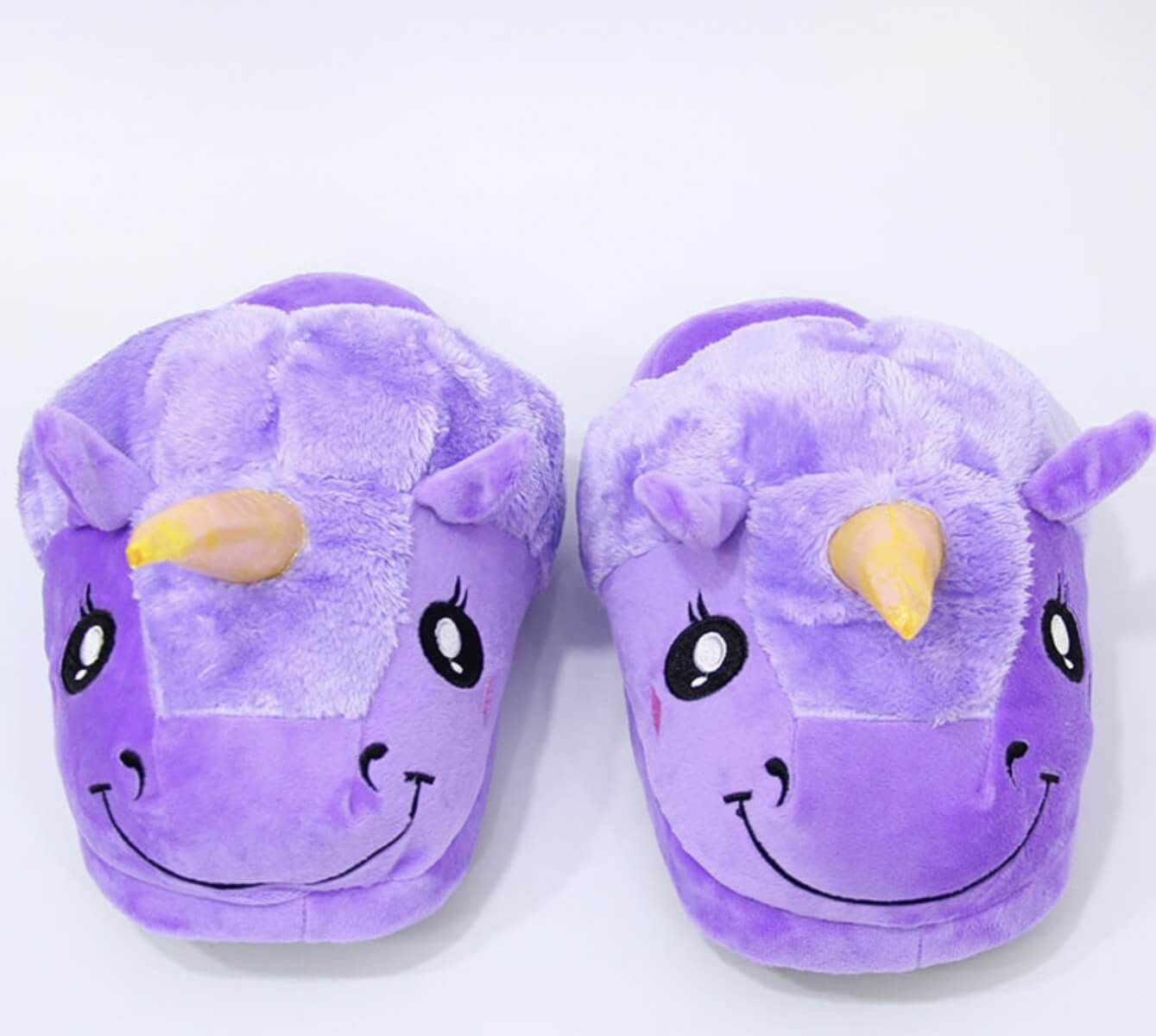 Пориньте у світ магії та затишку з Тапки Єдинороги відкриті у ніжному фіолетовому кольорі. Ці напрочуд м'які та затишні тапки з очима і маленьким рогом посередині не тільки ніжно зігріють ваші ніжки, а й додадуть вашому будинку нотку магії.